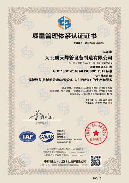 • Çin Hebei Tengtian Welded Pipe Equipment Manufacturing Co.,Ltd. Sertifikalar
